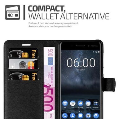 Lompakkokotelossa Nokia 6 2017 -älypuhelimelle on korttipaikat ja jalusta-toiminto. Tällä kotelolla puhelimesi on täydellisesti suojattu. Kotelo on valmistettu korkealaatuisista materiaaleista. Kaikkiin portteihin pääsee vapaasti käsiksiTutustu ominaisuuksiin