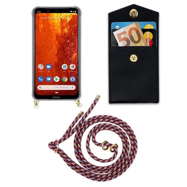 Cadorabo matkapuhelimen Suojakuori läpinäkyvästä TPU-silikonista johdolla ja pienellä kotelolla korteille ja rahalle