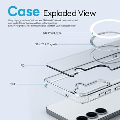 NORTHJO Samsung Galaxy S25 Magneettikotelo PC + TPU Puhelimen Suojakuori Etunäytön Suojalla + Linssikalvolla - LäpinäkyväTämä sarja sisältää magneettisen PC-kotelon, karkaistun lasinäytönsuojan ja kameran linssisuojan, tarjoten täydellisen suojan laiTutustu ominaisuuksiin