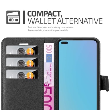 SUUNNITTELU: Kirjatyylisessä keinonahkakotelossa on korttipaikat ja vaakasuora jalustatoiminto, jolla voit helposti muuntaa kotelon näytöksi.