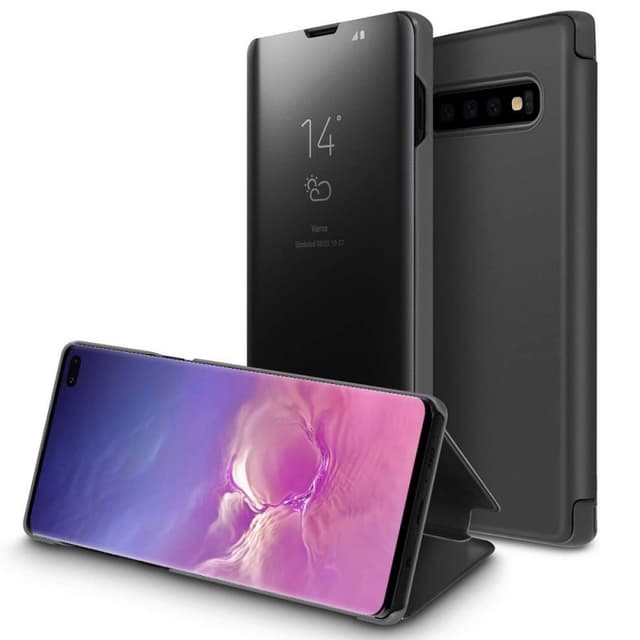 Peili FlipCase, mustasävyinen läpinäkyvä läppäkotelo peilitehosteella.