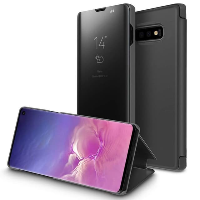 Peili FlipCase, mustasävyinen läpinäkyvä läppäkotelo peilitehosteella.