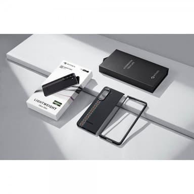 Air Case Galaxy Z Fold 5:lle tarjoaa lähes kuoren kaltaisen ulkonäön ja tunteen, samalla suojaten sitä päivittäiseltä kulumiselta, paksuudeltaan 0,95 mm, puolet kruunusta.