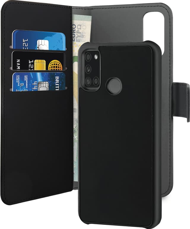 • Puro 2in1 Samsung Galaxy A21s lompakkokotelo (musta)