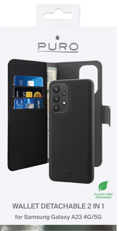 Puro 2in1 Samsung Galaxy A23 4G/5G lompakkokotelo (musta)