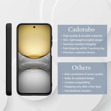 [Täydellinen istuvuus] Erityisesti Realme C75iä varten kehitetty Cadorabo-kotelo sopii täydellisesti sen ääriviivoihin. Se ympäröi tarkasti äänenvoimakkuuspainikkeet, valmiustilapainikkeen ja laitteen kaaret.