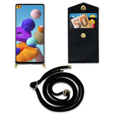 Cadorabo matkapuhelimen Suojakuori läpinäkyvästä TPU-silikonista johdolla ja pienellä kotelolla korteille ja rahalle