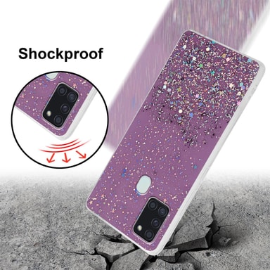 Matkapuhelimen Suojakuori Samsung Galaxy A21s -älypuhelimelle valmistettu joustava TPU silikoni glitter. Tällä kotelolla puhelimesi on täydellisesti suojattu. Suojus on valmistettu korkealaatuisista materiaaleistaTutustu ominaisuuksiin