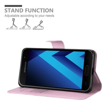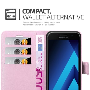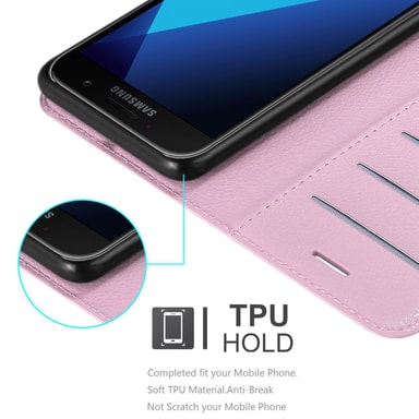 Lompakkokotelossa Samsung Galaxy A3 2017 -älypuhelimelle on korttipaikat ja jalusta-toiminto. Tällä kotelolla puhelimesi on täydellisesti suojattu. Kotelo on valmistettu korkealaatuisista materiaaleista. Kaikkiin portteihin pääsee vapaasti käsiksiTutustu ominaisuuksiin