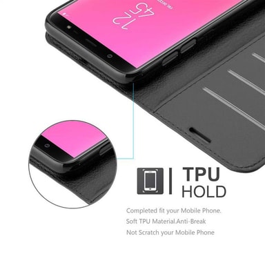 Lompakkokotelossa Samsung Galaxy J8 2018 -älypuhelimelle on korttipaikat ja jalusta-toiminto. Tällä kotelolla puhelimesi on täydellisesti suojattu. Kotelo on valmistettu korkealaatuisista materiaaleista. Kaikkiin portteihin pääsee vapaasti käsiksiTutustu ominaisuuksiin