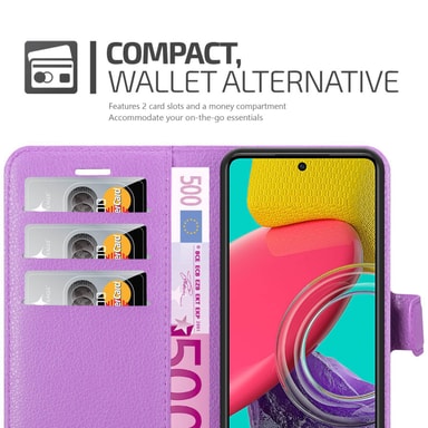 Lompakkokotelossa Samsung Galaxy M53 5G -älypuhelimelle on korttipaikat ja jalusta-toiminto. Tällä kotelolla puhelimesi on täydellisesti suojattu. Kotelo on valmistettu korkealaatuisista materiaaleista. Kaikkiin portteihin pääsee vapaasti käsiksiTutustu ominaisuuksiin