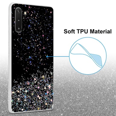 Matkapuhelimen Suojakuori Samsung Galaxy NOTE 10 -älypuhelimelle valmistettu joustava TPU silikoni glitter. Tällä kotelolla puhelimesi on täydellisesti suojattu. Suojus on valmistettu korkealaatuisista materiaaleistaTutustu ominaisuuksiin