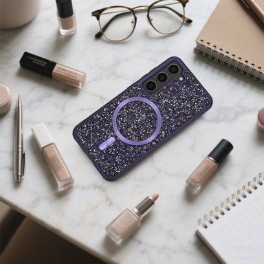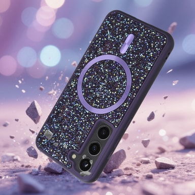 Cadorabo Glitter -kotelo, yhteensopiva Samsung Galaxy S23 PLUS:n kanssa, tarjoaa täydellisen yhdistelmän ylellisyyttä ja suojaa. Kimalteleva Bling-timanttipinta takaa tyylikkään ulkonäön, kun taas kestävä rakenne suojaa älypuhelinta naarmuilta, iskuilta ja kulumiselta. Sisäänrakennetun magneettisen voiman ansiosta kotelo on yhteensopiva MagSafe-lisävarusteiden kanssa, joten langaton lataus toimii vaivattomasti.