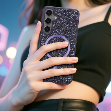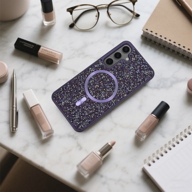 Cadorabo Glitter -kotelo, yhteensopiva Samsung Galaxy S24 PLUS:n kanssa, tarjoaa täydellisen yhdistelmän ylellisyyttä ja suojaa. Kimalteleva Bling-timanttipinta takaa tyylikkään ulkonäön, kun taas kestävä rakenne suojaa älypuhelinta naarmuilta, iskuilta ja kulumiselta. Sisäänrakennetun magneettisen voiman ansiosta kotelo on yhteensopiva MagSafe-lisävarusteiden kanssa, joten langaton lataus toimii vaivattomasti.