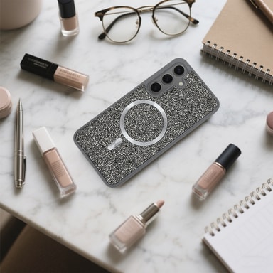 Cadorabo Glitter -kotelo, yhteensopiva Samsung Galaxy S24 PLUS:n kanssa, tarjoaa täydellisen yhdistelmän ylellisyyttä ja suojaa. Kimalteleva Bling-timanttipinta takaa tyylikkään ulkonäön, kun taas kestävä rakenne suojaa älypuhelinta naarmuilta, iskuilta ja kulumiselta. Sisäänrakennetun magneettisen voiman ansiosta kotelo on yhteensopiva MagSafe-lisävarusteiden kanssa, joten langaton lataus toimii vaivattomasti.