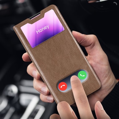 SUUNNITTELU: Käytännöllinen kotelo ikkunalla, jalustalla ja magneettisuljuksella. Kaksoisikkunan ansiosta mm. B. Hyväksy puhelut suljettuna. NO Auto On - Off-toiminto