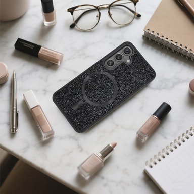 Cadorabo Diamant Glitter -kotelo, musta, yhteensopiva Samsung Galaxy S25 – korkealaatuinen suojaus, yhteensopiva MagSafe-tekniikan kanssa