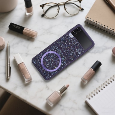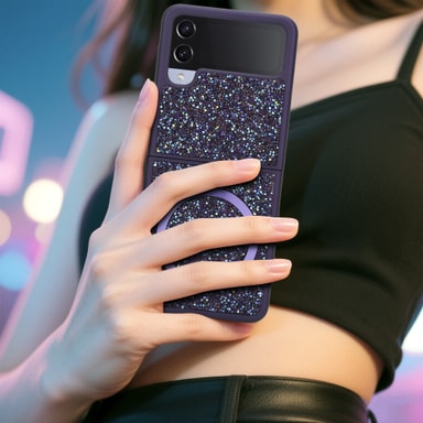 Cadorabo Glitter -kotelo, yhteensopiva Samsung Galaxy Z FLIP 4:n kanssa, tarjoaa täydellisen yhdistelmän ylellisyyttä ja suojaa. Kimalteleva Bling-timanttipinta takaa tyylikkään ulkonäön, kun taas kestävä rakenne suojaa älypuhelinta naarmuilta, iskuilta ja kulumiselta. Sisäänrakennetun magneettisen voiman ansiosta kotelo on yhteensopiva MagSafe-lisävarusteiden kanssa, joten langaton lataus toimii vaivattomasti.