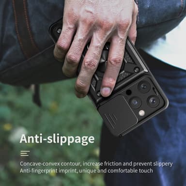 Kuori suojaa erinomaisesti lialta, naarmuilta ja kolhuilta. Lisäsuojaa kameralle, sillä tässä kuoressa on kameran liukusäädin, jonka voit helposti vetää sivuun.