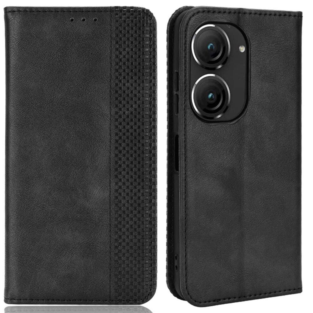 SKALO Asus Zenfone 9 5G Kohokuvioitu Premium lompakkokotelo - Musta
