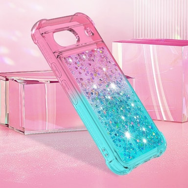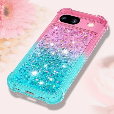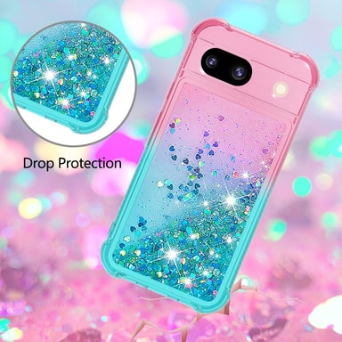 SKALO Google Pixel 8a Juoksuhiekka Glitter Sydämet TPU kuori - Pinkki-Turkoosi