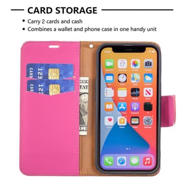 Ensiluokkainen PU-nahkainen lompakkokotelo, jossa on korttipaikat.