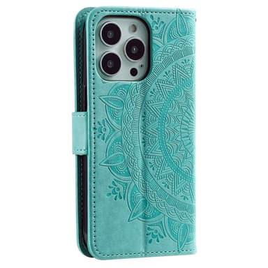 PU-nahasta valmistettu lompakkokotelo, jossa on moderni mandala-malli ja korttipaikat.