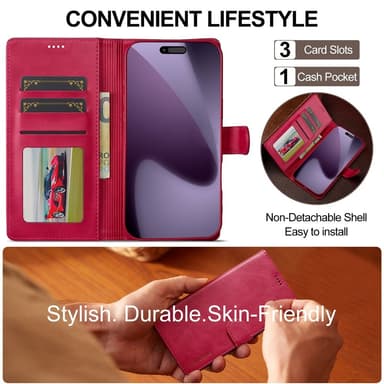 SKALO iPhone 17 Pro LC.IMEEKE Premium PU-nahka Lompakkokotelo - Cerise