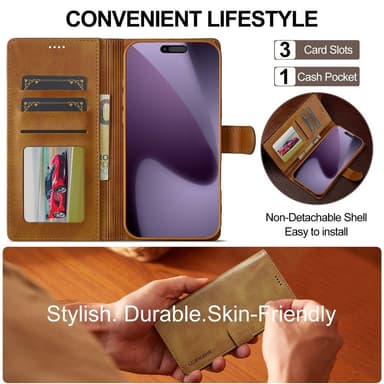 SKALO iPhone 17 Pro LC.IMEEKE Premium PU-nahka Lompakkokotelo - Vaaleanruskea