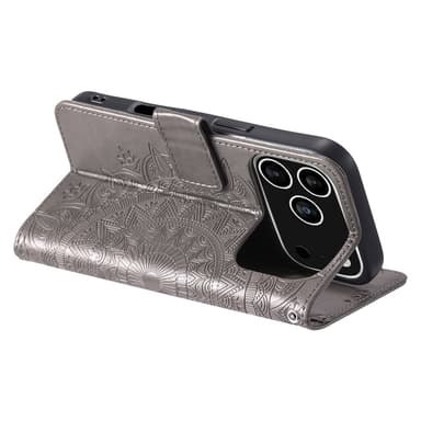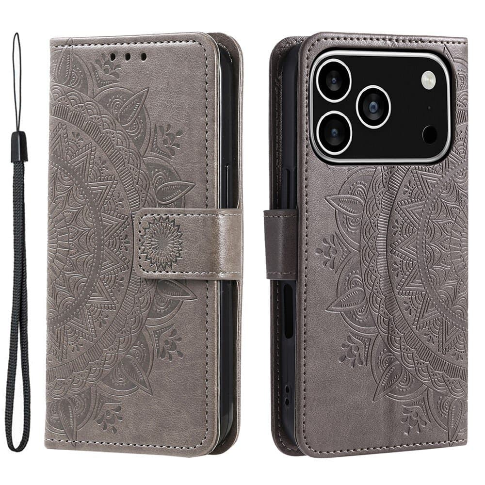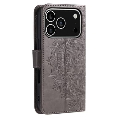 SKALO iPhone 17 Pro Mandala Lompakkokotelo - Harmaa