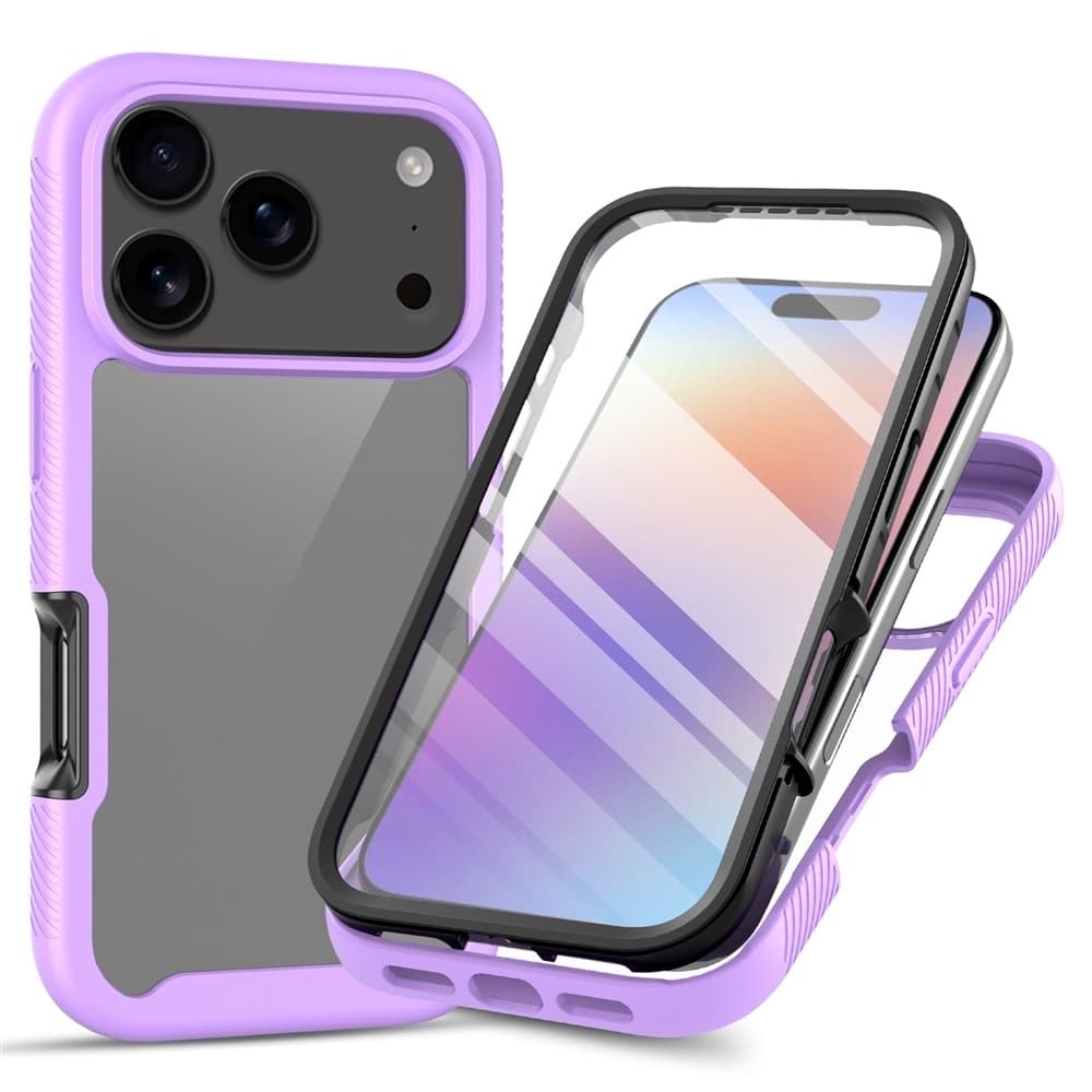 SKALO iPhone 17 Pro Max Shockproof Clear Hybrid+Näytönsuoja Suojakuori - Violetti