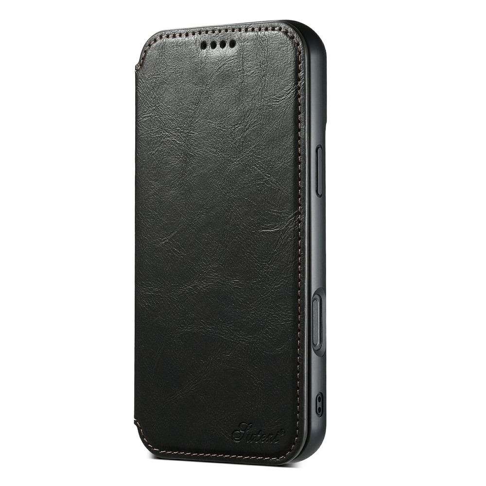 SUTENI J05 PU-Nahka on tyylikäs ja kestävä puhelinkotelo, joka on valmistettu kuvioidusta PU-nahasta ja TPU:sta. Se suojaa puhelintasi arjen kulutukselta säilyttäen samalla hienostuneen ulkonäön. Magneettinen suljin pitää puhelimen ja sisällön turvallisesti paikoillaan ja mahdollistaa nopean käytön. Sisäänrakennettu magneettikela tekee kotelosta yhteensopivan MagSafe-latauksen kanssa, joten voit ladata ilman kotelon poistamista. Kolme korttipaikkaa ja setelitasku tekevät lompakosta tarpeettoman. Kotelon voi taittaa katselutelineeksi handsfree-käyttöön. Korotettu reuna suojaa kameraa naarmuilta ja vaurioilta.