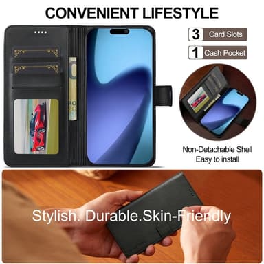 Tämä tyylikäs kotelo on valmistettu PU-nahasta, jossa on vasikannahkainen rakenne, sekä TPU-materiaalista, tarjoten pehmeän tuntuman ja hienostuneen ulkonäön. Se suojaa puhelinta kauttaaltaan 360 asteen suojalla.Tutustu ominaisuuksiin