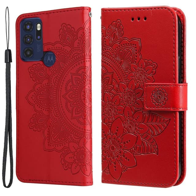 • SKALO Moto G60S Mandala lompakkokotelo - Punainen