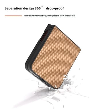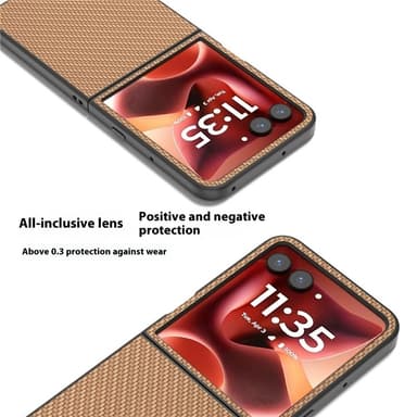 Tämä tyylikäs kotelo on valmistettu korkealaatuisesta PU-nahasta ja PC-materiaalista, tarjoten kestävän ja pitkäikäisen suojan laitteellesi. Hiilikuitutekstuuri antaa laitteelle hienostuneen ilmeen ja parantaa sen ulkonäköä. Joustava taitettava rakenne säilyttää puhelimen täyden toiminnallisuuden ja tarjoaa samalla suojaa ja käytännöllisyyttä. Takapuoli on täysin suojattu naarmuilta, iskuilta ja muilta vaurioilta. Helppo asentaa ja irrottaa tarpeen mukaan.