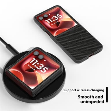 Tämä tyylikäs kotelo on valmistettu korkealaatuisesta PU-nahasta ja PC-materiaalista, tarjoten kestävän ja pitkäikäisen suojan laitteellesi. Hiilikuitutekstuuri antaa laitteelle hienostuneen ilmeen ja parantaa sen ulkonäköä. Joustava taitettava rakenne säilyttää puhelimen täyden toiminnallisuuden ja tarjoaa samalla suojaa ja käytännöllisyyttä. Takapuoli on täysin suojattu naarmuilta, iskuilta ja muilta vaurioilta. Helppo asentaa ja irrottaa tarpeen mukaan.