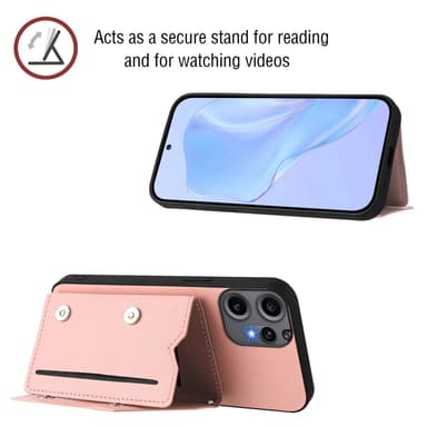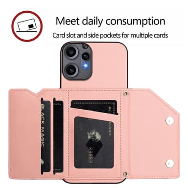 Tämä kotelo on valmistettu korkealaatuisesta TPU:sta ja PU-nahasta, ja sen pehmeä pinta tarjoaa miellyttävän otteen ja tyylikkään ulkonäön. Sisäänrakennetut korttipaikat mahdollistavat tärkeimpien korttien säilytyksen ilman erillistä lompakkoa. Korttipidike toimii myös kätevänä jalustana handsfree-käyttöön. Iskunkestävä rakenne suojaa tehokkaasti pudotuksilta ja kolhuilta. Magneettisuljin pitää arvoesineet turvassa ja tarjoaa nopean pääsyn. Mukana tulee yhteensopiva rannelenkki lisäturvaa ja -mukavuutta varten.