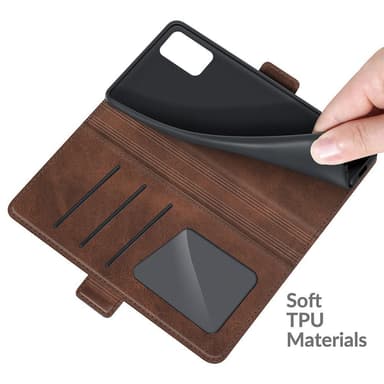 SKALO Samsung A02s / A03s Premium Wallet Lompakkokotelo - Tummanruskea