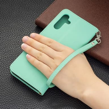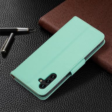 Ensiluokkainen PU-nahkainen lompakkokotelo, jossa on korttipaikat.