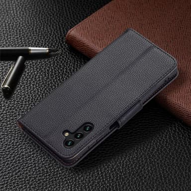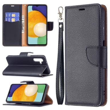 SKALO Samsung A13 5G Premium Litchi Lompakkokotelo - Musta