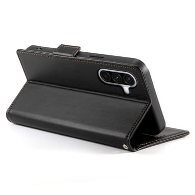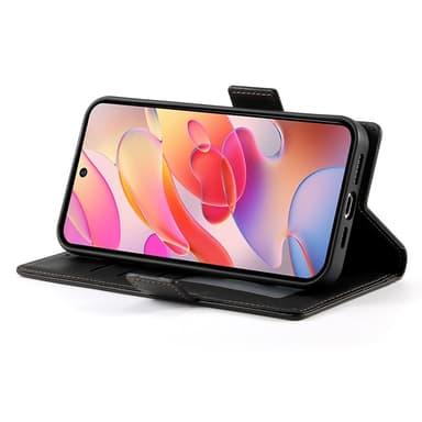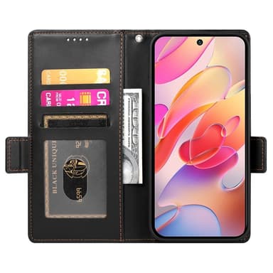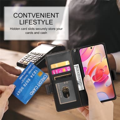 Tämä kotelo on valmistettu pehmeästä TPU-sisäkuoresta ja PU-nahkaisesta ulkopinnasta, tarjoten kestävyyttä ja laadukkaan tuntuman pitkäaikaiseen käyttöön. Monikäyttöinen muotoilu sisältää kolme korttipaikkaa ja yhden setelitaskun, joten voit kantaa tärkeimmät mukanasi ilman erillistä lompakkoa. Magneettiset sivulukot takaavat turvallisen ja helpon pääsyn puhelimeen ja kortteihin, pitäen kaiken paikoillaan. Kotelon voi taittaa jalustaksi, mikä tekee videoiden katselusta ja videopuheluista vaivatonta ilman käsiä. Se tarjoaa kattavan suojan iskuilta ja naarmuilta, säilyttäen samalla ohuen, tyylikkään ja laadukkaan ulkonäön.