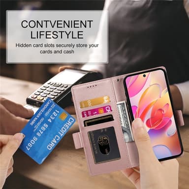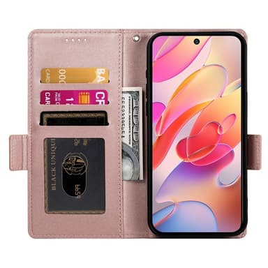 Tämä kotelo on valmistettu pehmeästä TPU-sisäkuoresta ja PU-nahkaisesta ulkopinnasta, tarjoten kestävyyttä ja laadukkaan tuntuman pitkäaikaiseen käyttöön. Monikäyttöinen muotoilu sisältää kolme korttipaikkaa ja yhden setelitaskun, joten voit kantaa tärkeimmät mukanasi ilman erillistä lompakkoa. Magneettiset sivulukot takaavat turvallisen ja helpon pääsyn puhelimeen ja kortteihin, pitäen kaiken paikoillaan. Kotelon voi taittaa jalustaksi, mikä tekee videoiden katselusta ja videopuheluista vaivatonta ilman käsiä. Se tarjoaa kattavan suojan iskuilta ja naarmuilta, säilyttäen samalla ohuen, tyylikkään ja laadukkaan ulkonäön.