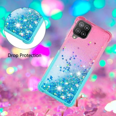 TPU-kuori, jossa on kelluvaa nestettä, jossa on glitteriä ja sydämiä, joka suojaa hyvin kolhuilta ja pudotusvaurioilta.