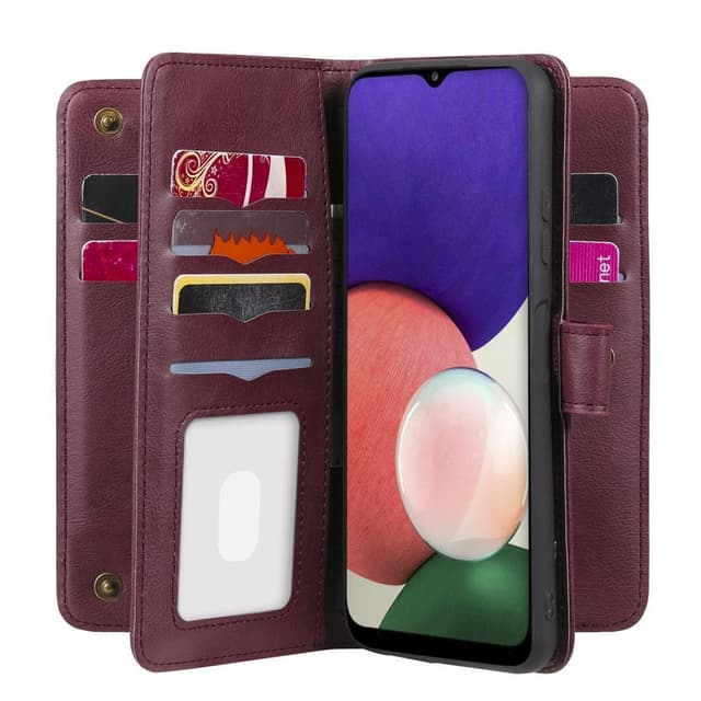 • SKALO Samsung A22 5G 10-lokeroa Lompakkokotelo - Viininpunainen