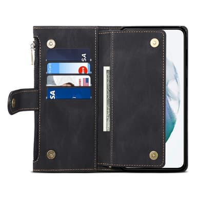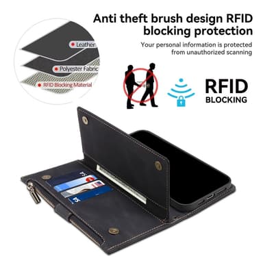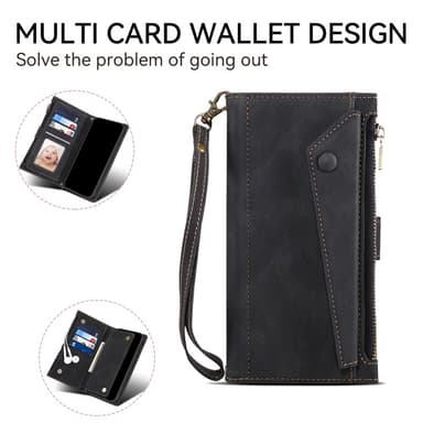 ESEBLE Big Wallet suojaa korttisi ja rahasi RFID-estolla ja tyylikkäällä muotoilulla kestävästä PU-nahasta ja TPU:sta. Monitoiminen lompakko tarjoaa tilaa 8 kortille, seteleille ja kolikoille. Älykäs jalustatoiminto helpottaa elokuvien katselua ja irrotettava rannehihna varmistaa helpon kuljetuksen. Neljä magneettista nappia pitävät lompakon turvallisesti suljettuna.