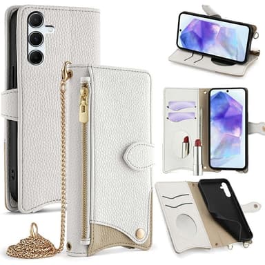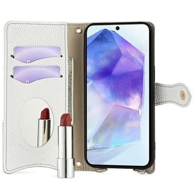 Suojaa puhelimesi tyylikkäästi tällä monitoimisella Litchi Makeup Mirror Chain -kotelolla. Pehmeä TPU-sisäkuori ja litchi-kuvioitu PU-nahka suojaavat iskuilta ja naarmuilta, samalla kun epäsäännöllinen kalanpyrstö-muotoilu lisää eleganttia ilmettä. Sisäänrakennettujen korttipaikkojen, meikkispeilin, käteistaskun ja vetoketjutaskun ansiosta kaikki tärkeät tavarat ovat kätevästi käsillä. Magneettinen suljin pitää tavarasi turvassa, ja kotelo toimii myös jalustana. Mukana tuleva 1,2 m:n metalliketju helpottaa puhelimen kantamista.