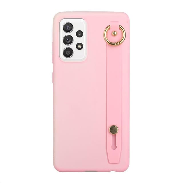 Ohut TPU-kuori, jonka takana on hihna paremman pidon takaamiseksi. Kultaiset metalliset yksityiskohdat.