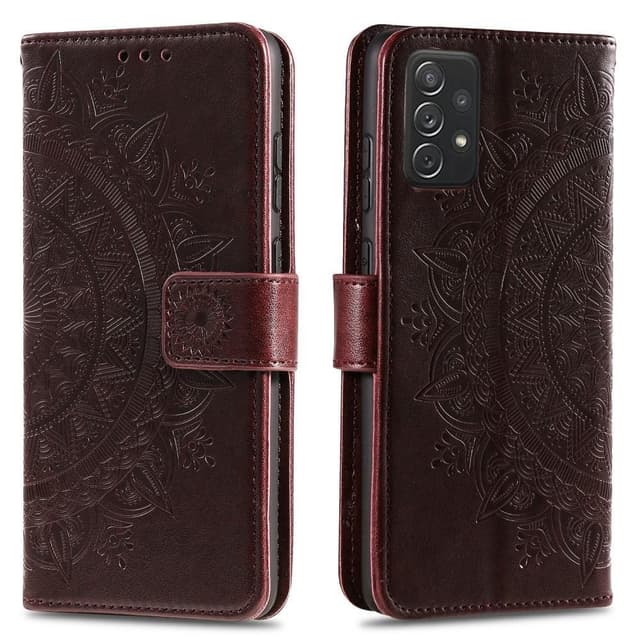 • SKALO Samsung A52/A52s Mandala lompakkokotelo - Tummanruskea