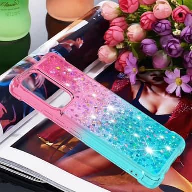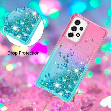TPU-kuori, jossa on kelluvaa nestettä, jossa on glitteriä ja sydämiä, joka suojaa hyvin kolhuilta ja pudotusvaurioilta.