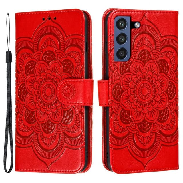 • SKALO Samsung S21 FE Mandala lompakkokotelo - Punainen